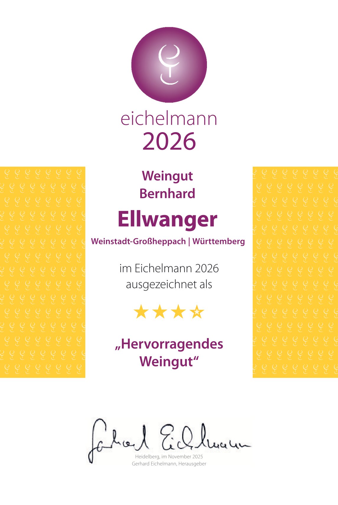 Der Eichelmann Weinführer hat uns als hervorragendes Weingut ausgezeichnet – eine wunderbare Anerkennung unserer Leidenschaft für Wein!